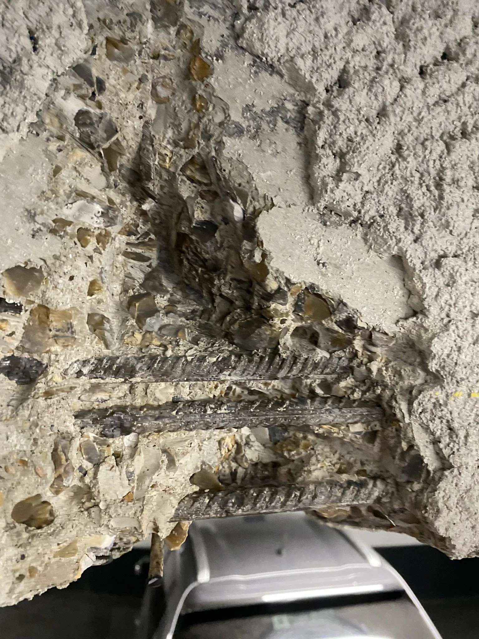 Sondages par marteau piqueur pour la reconnaissance des armatures et reconstitution des structures